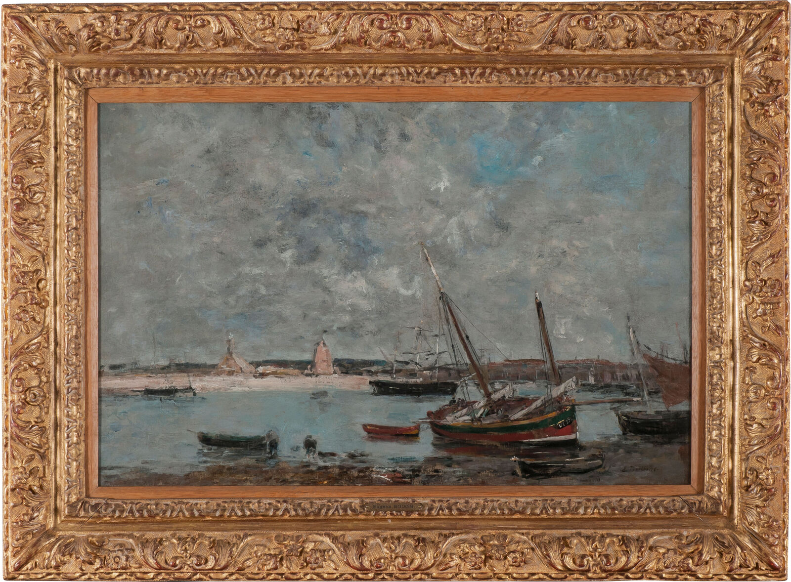 Eugène Boudin gab die wechselnden Lichtverhältnisse im Hafen, den bewegten Himmel, die unzähligen Graustufen der Wolken wieder. Im Kontrast dazu sind die Schiffe in kräftigen Grün- und Rottönen gemalt. Mit der tief liegenden Horizontlinie folgte Boudin der niederländischen Tradition des 17. Jahrhunderts, die dem Himmel den größten Teil der Bildfläche einräumte.
