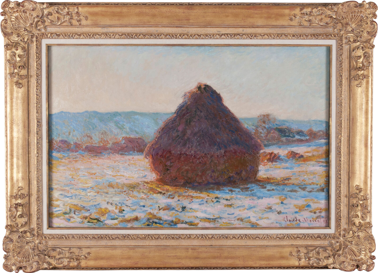 Claude Monets Serie der Getreideschober thematisiert den jahreszeitlichen Wandel der Landschaft und die je nach Tageszeit unterschiedlichen Wirkungen des Sonnenlichts. Monet erfasste die charakteristische Lichtstimmung eines kalten Wintertags und beschrieb die Reflexionen auf dem schneebedeckten Ackerboden in zarten Tönen von Gelb und Orange.