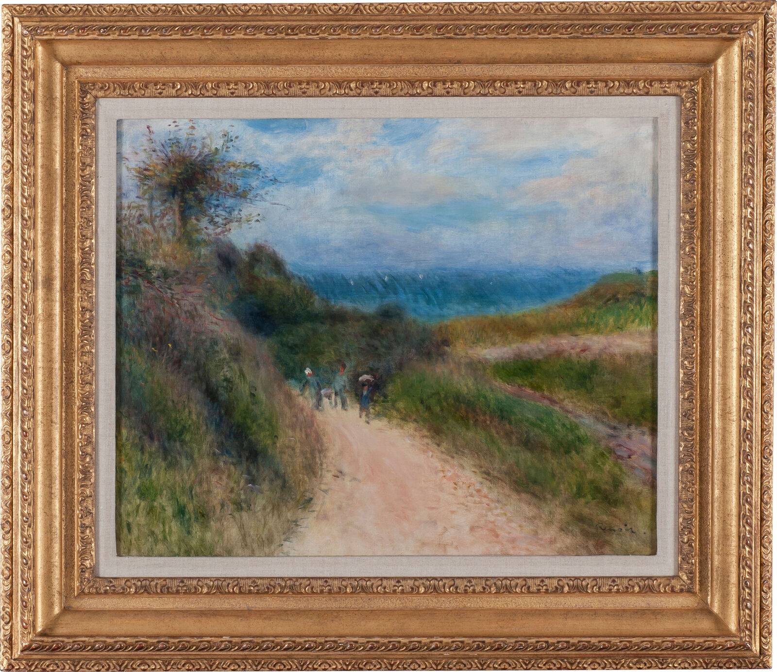 Pierre-Auguste Renoir setzte die Farben in dünnen Schichten auf die weiß grundierte Leinwand. Wie bei einem Aquarell scheint das Licht vom Grund her auf. Der Weg führt den Blick wie ein Trichter aus Licht auf eine Gruppe von drei Figuren in blauer Arbeitskleidung, die von der Muschelernte kommen. Miesmuscheln von den Küsten der Normandie wurden als „Austern der Armen“ in Paris vertrieben.