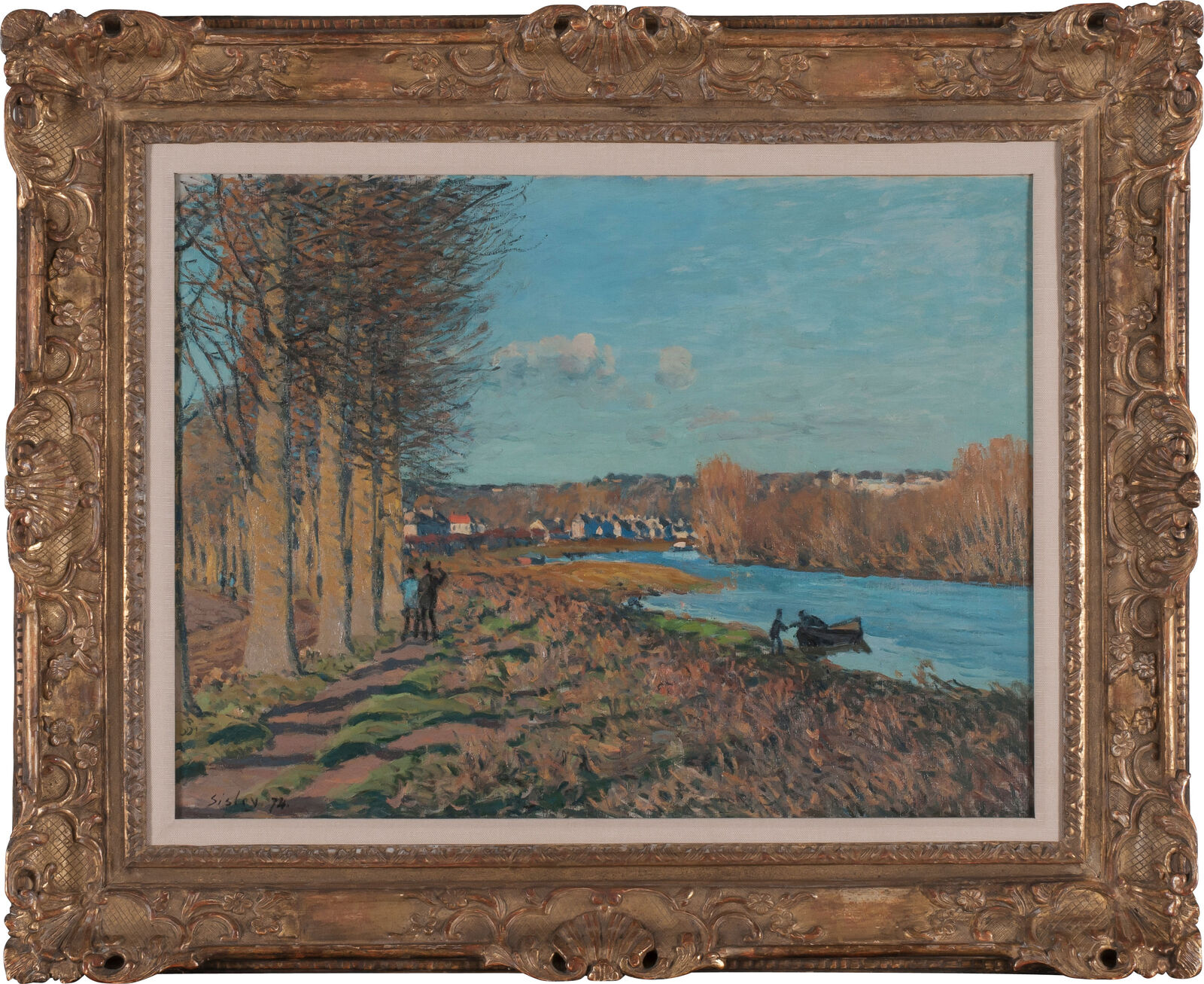 Anders als Claude Monet oder Pierre-Auguste Renoir malte Alfred Sisley ausschließlich Landschaften. Diese morgendliche Winterszene gestaltete er in leuchtender Farbigkeit, setzte das strahlende Blau von Himmel und Fluss gegen die Orangetöne der Büsche und Bäume. Die langen Schatten der Pappeln verleihen der Komposition eine rhythmisierende Spannung.