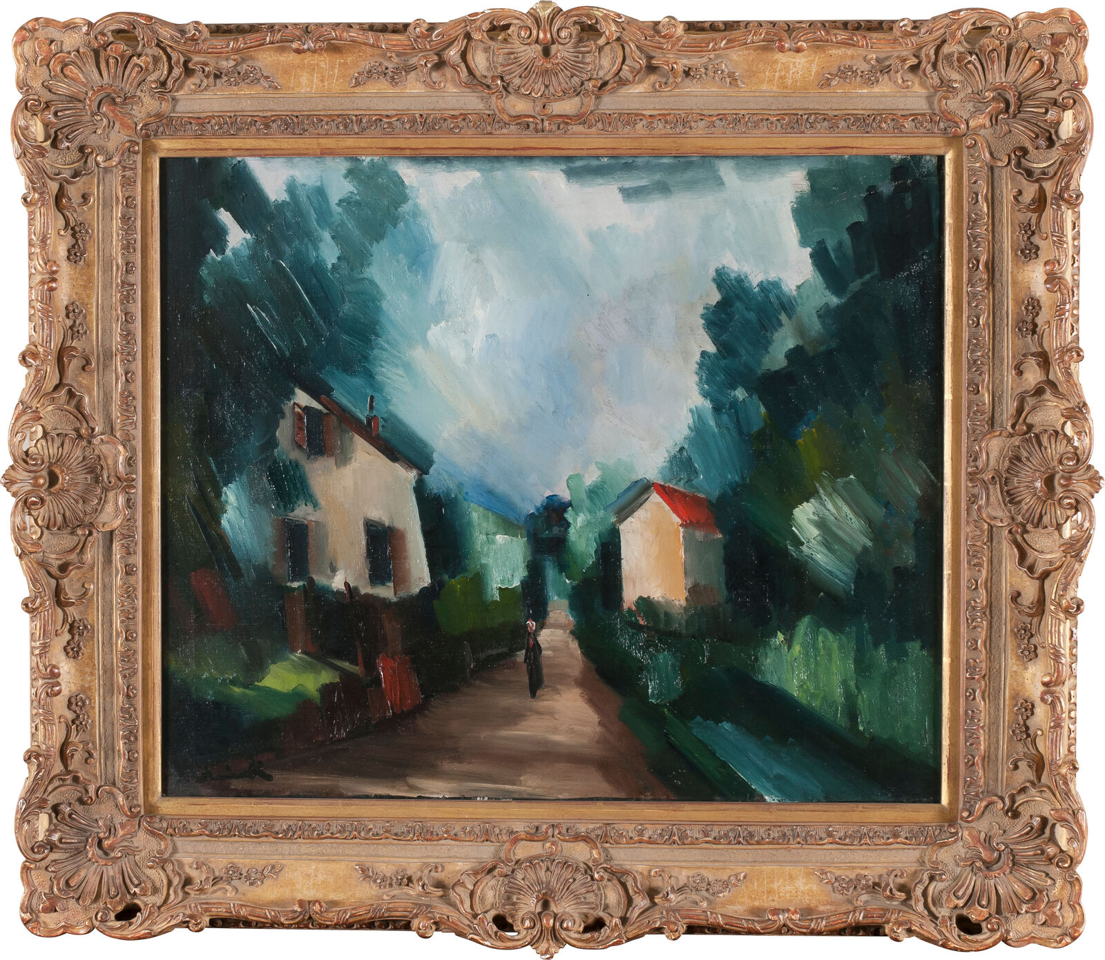 Maurice de Vlaminck übernahm von Paul Cézanne die geometrische Zergliederung der Bildraums, wandte aber einen satteren Farbauftrag an. Die Töne sind düster und dramatisch, die Perspektive der Häuser ist verzerrt. Der aus einer Musikerfamilie stammende Vlaminck, der auch als Kontrabassist auftrat, arbeitete auch in seiner Malerei mit dynamischen Rhythmen.