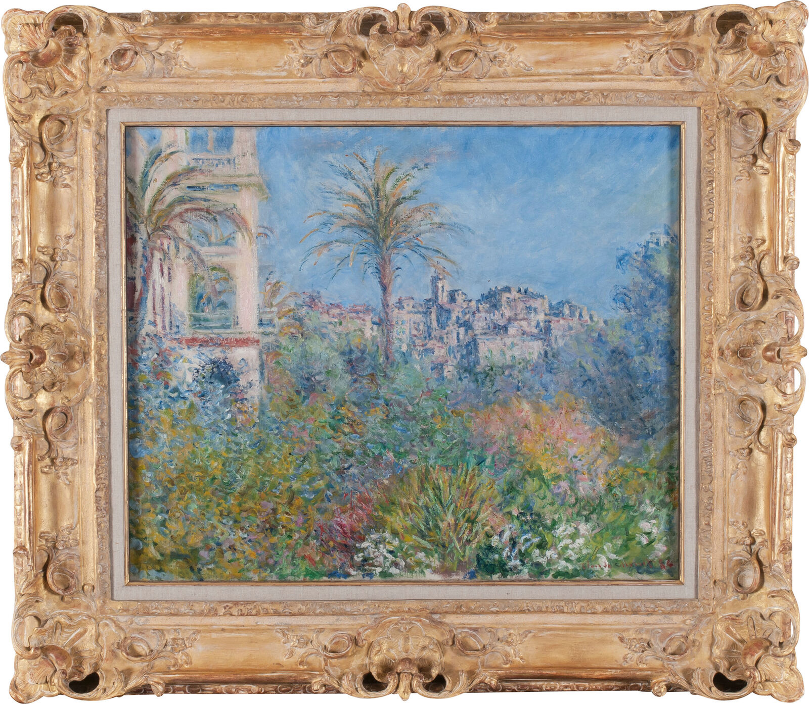 In the paintings from his stay in Bordighera in 1884, Monet concentrated on motifs characteristic of the idyllic coastal town such as gardens and their exotic vegetation with palm, olive, and citrus trees. This composition, which includes a view of the Città Alta, was painted from the garden of the Villa Garnier built by Parisian star architect Charles Garnier as a winter residence for his family between 1871 and 1873. The villa was also known for its elaborately cultivated garden, which boasted several hundred species of plants.