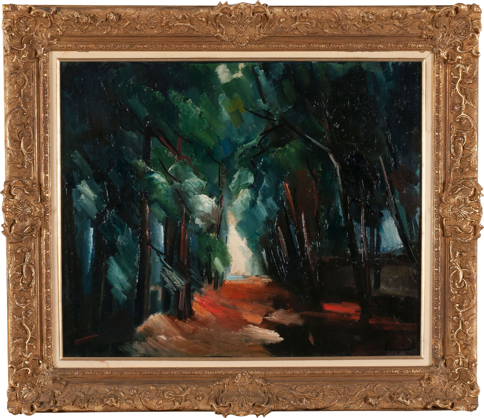 Vlaminck recalled the early history of Impressionism in the forest of Fontainebleau with this path in the underbrush. Broad and expressive impasto gives the composition a strong geometric structure. Vlaminck’s incentive to paint abstractly is an intensification of Claude Monet’s motto: it is not important what you paint, but how you paint it.